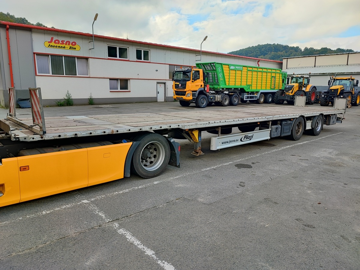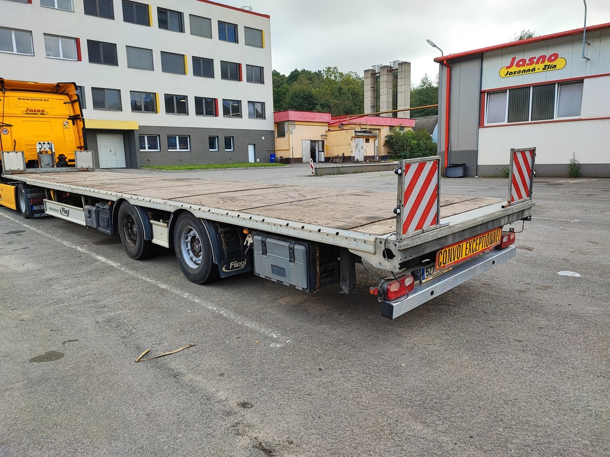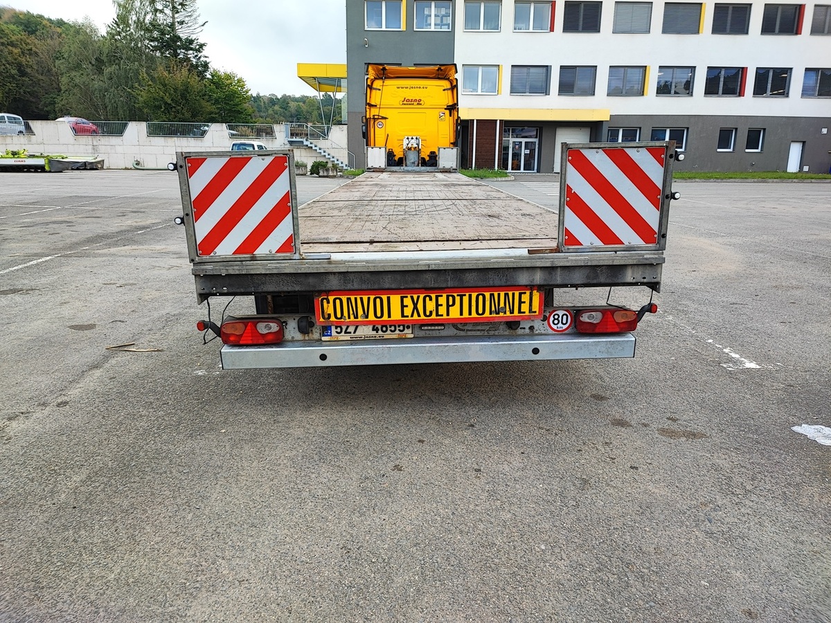 Poznámka: vzduchové pérování, nadměrové cedule vpředu i vzadu, výstražný maják pro nadměrný náklad,nápravy BPW,pozinkovaný rám návěsu, kotoučové brzdy, podlaha vodě vzdorná překližka, 3x schránka na nářadí, držák ALU nájezdů, pneu cca 30%.