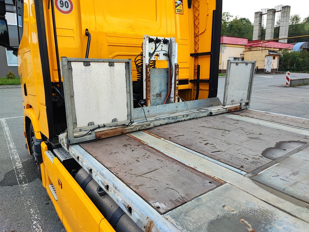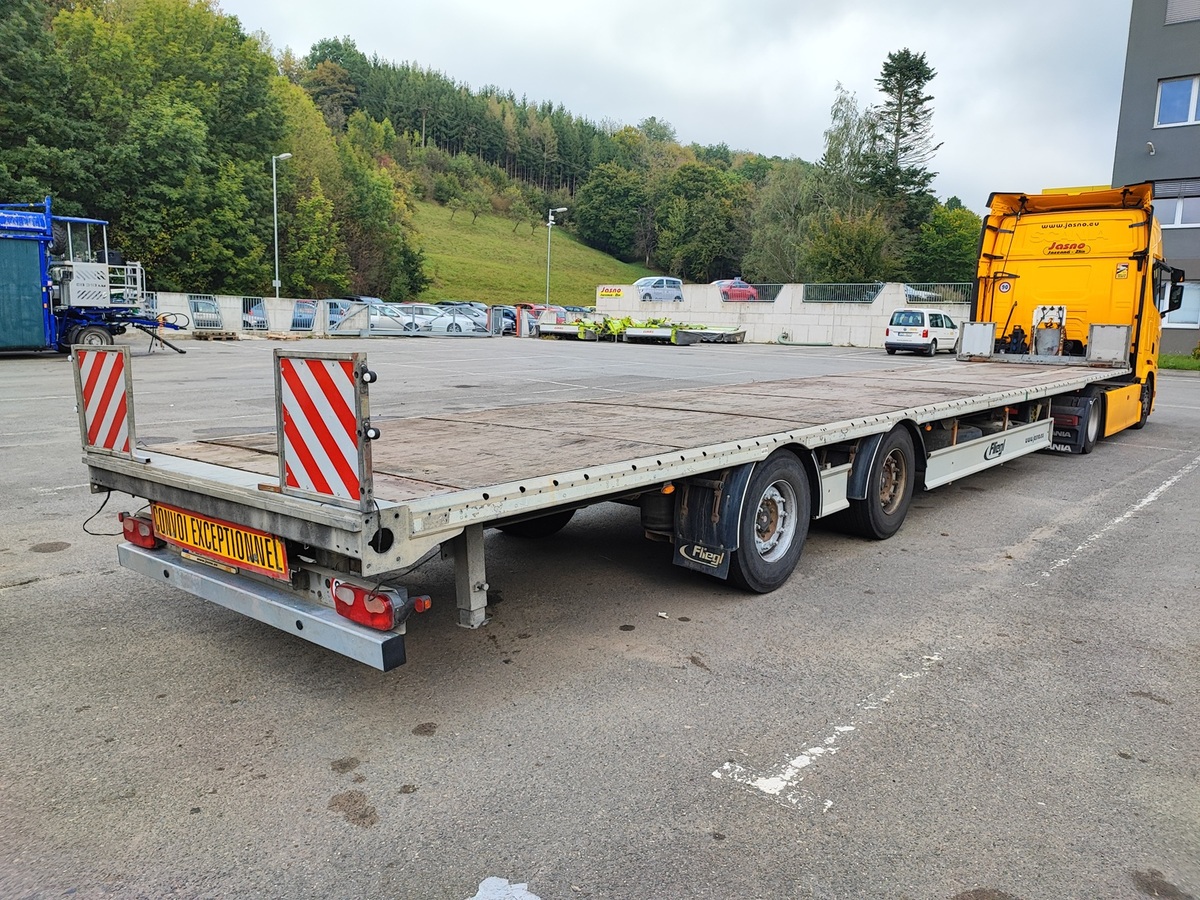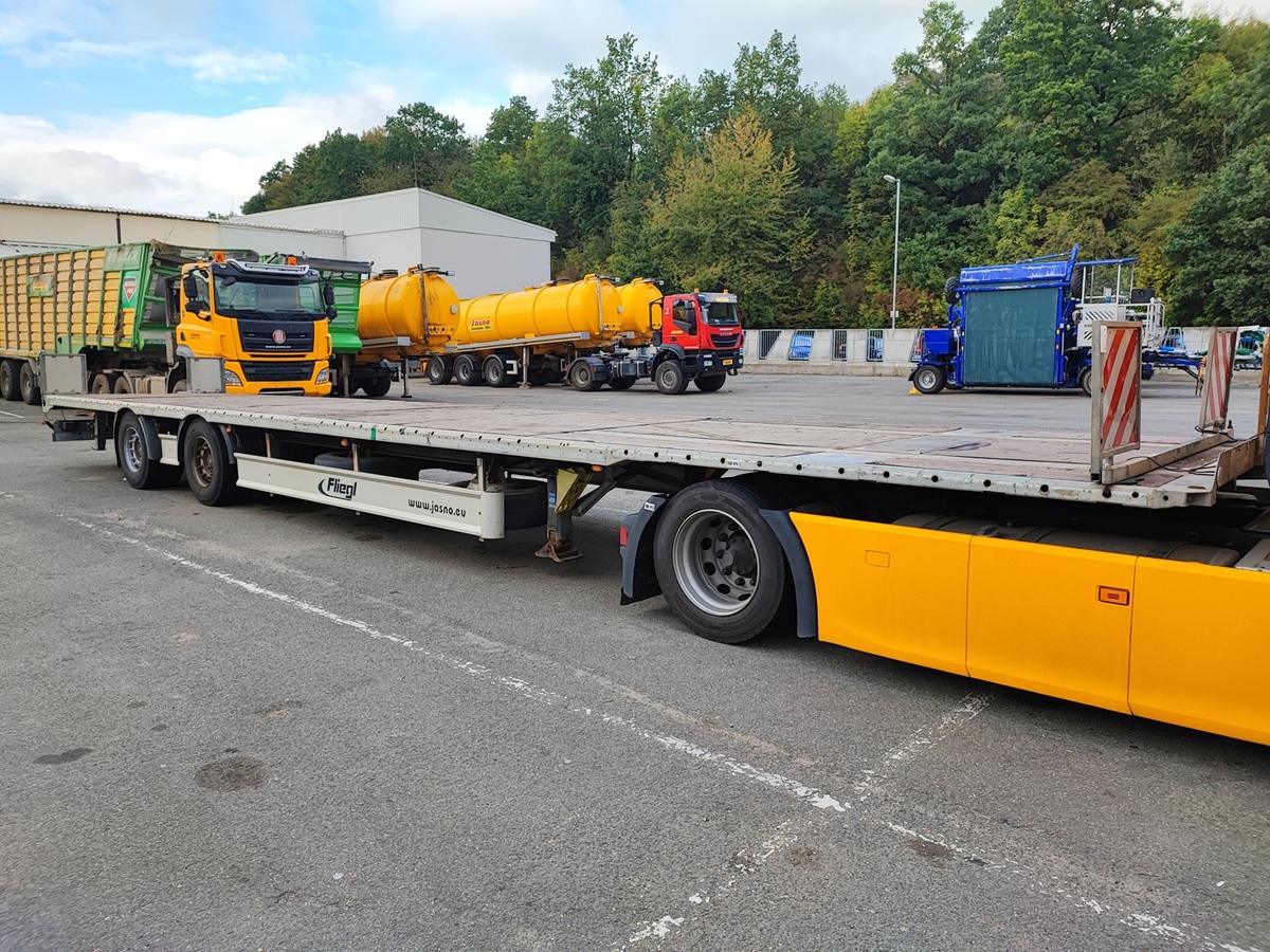 Poznámka: vzduchové pérování, nadměrové cedule vpředu i vzadu, výstražný maják pro nadměrný náklad,nápravy BPW,pozinkovaný rám návěsu, kotoučové brzdy, podlaha vodě vzdorná překližka, 3x schránka na nářadí, držák ALU nájezdů, pneu cca 30%.