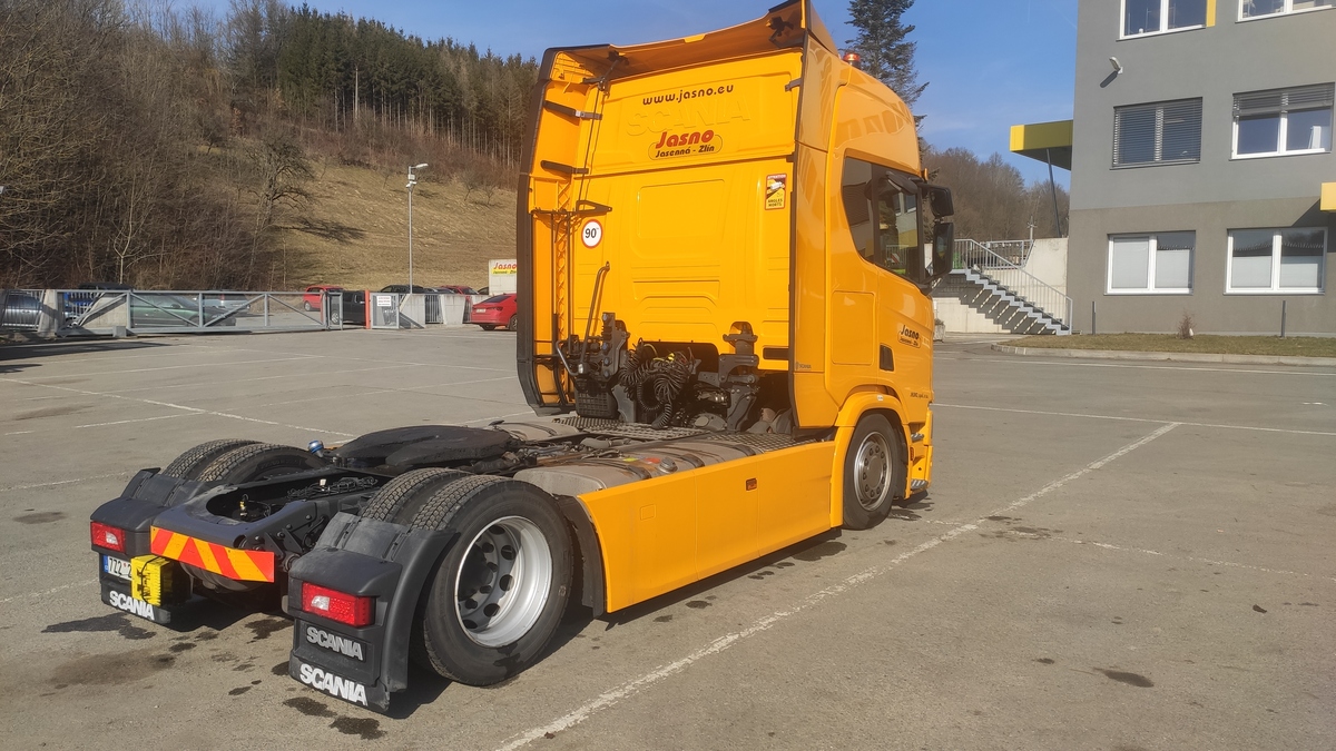 Poznámky - aut. a nez. klimatizace,nez.topení, aut. převodovka, autochladnička, CD přehrávač, navigace,autorádio, el. okna, posilovač řízení, palubní počítač,spací kabina řady R-highline, nastavitelný volant, 2 lůžka, el. zrcátka, tachograf nové generace, tempomat, retardér, střešní spoiler, pérování vzduch, boční spoilery, výškově nastavitelné sedadlo řidiče, pohon 4x2, retarder, plní 'EURO VI', denní svícení, bez EGR ventilu, AdBlue, pravidelný servis v autor.servisu, servisní služba Scania Optimum.